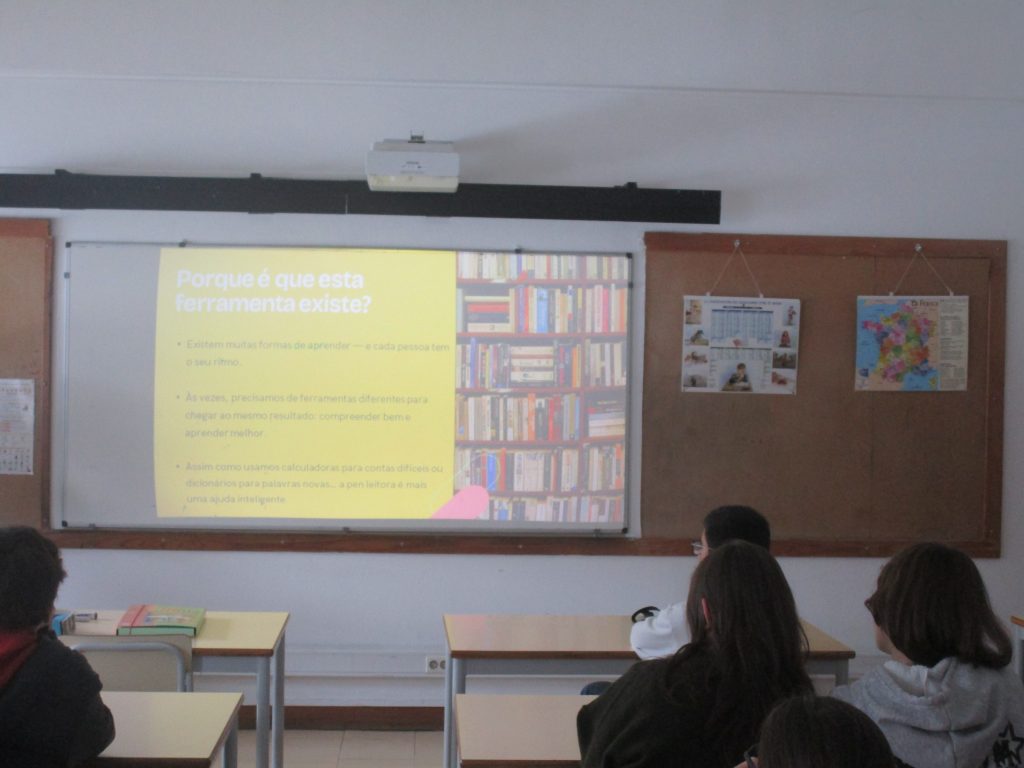 Durante o mês de janeiro, foi feita a apresentação, nas diferentes turmas da escola, as potencialidades das pen reader adquiridas no âmbito do Projeto Somo + a Ler.