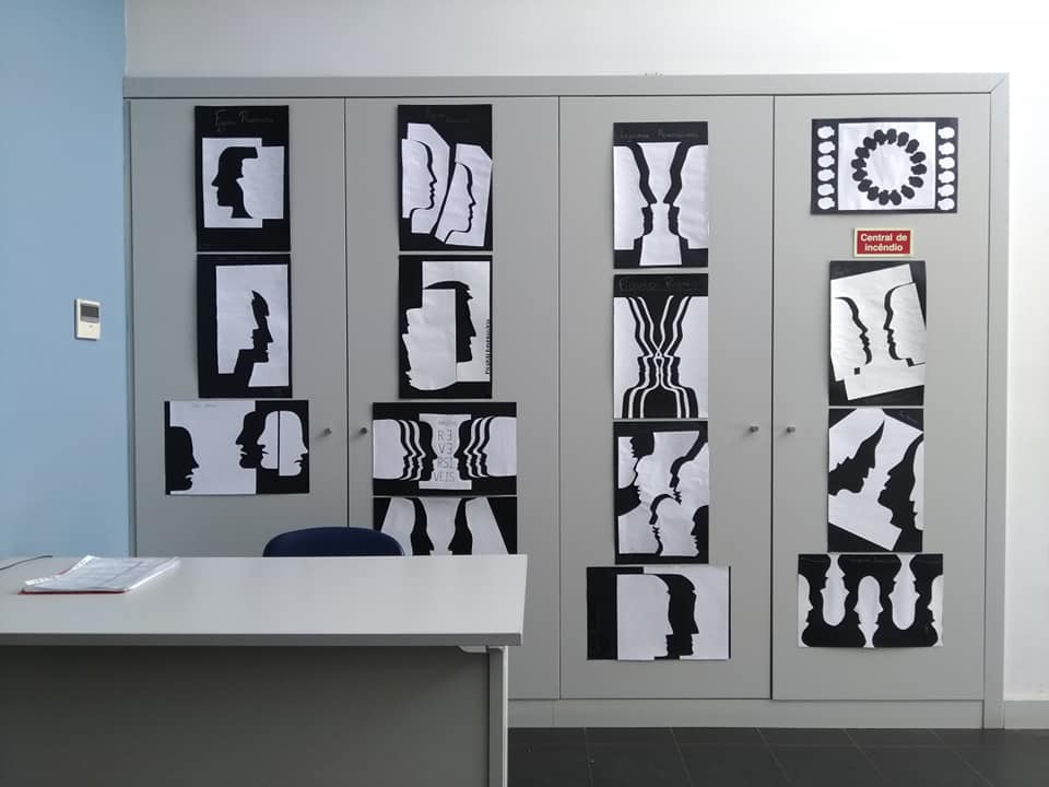 Nós por cá Figuras reversíveis — 4 Junho, 2019 comments off No dia 31 de maio deu início uma exposição de trabalhos realizados na aula de Educação Visual pelos alunos do 9°Ano de Escolaridade.Patente ao público no Átrio do CTE da ESQP. Atividade dinamizada pela disciplina de Educação Visual.