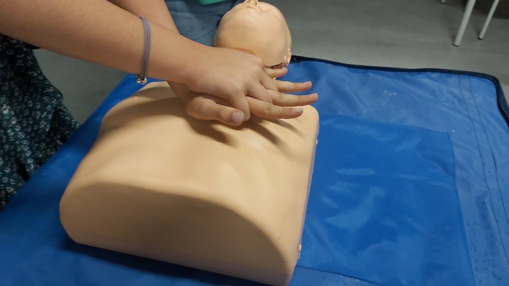 10º ano. Conteúdos, no âmbito da disciplina de Educação Física.Sessão teórico/prática de aquisição de conhecimentos em SBV- DAE, pelo Técnico da Proteção Civil da CMC, André Morais.