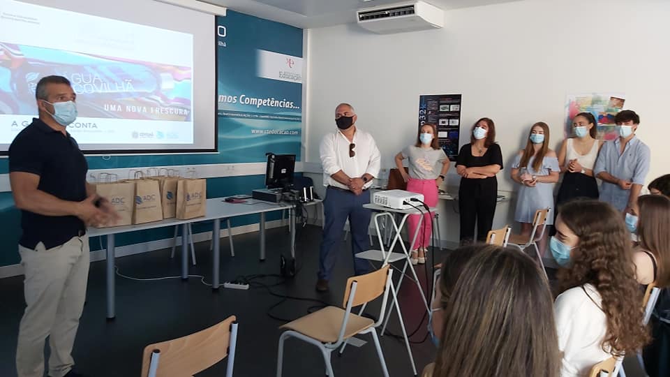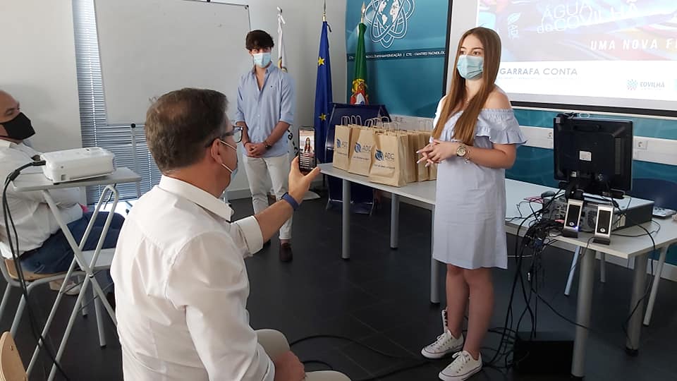 Projeto desenvolvido pelos alunos, Camila Bizarro, Leonor Simão e Sandro Branquinho do 12° ano de escolaridade, no âmbito da disciplina de Cidadania e Desenvolvimento. O Vereador, José Miguel Oliveira e administrador da ADC, sublinhou que esta iniciativa se enquadra no “caminho de sensibilização ambiental” que tem sido seguido por esta empresa. Assim, a empresa municipal Águas da Covilhã (ADC) vai entregar garrafas de vidro a vários organismos públicos do concelho para promover o consumo de água da torneira e reduzir o uso do plástico. Segundo o autarca, as garrafas são distribuídas pelos serviços da própria autarquia e da Assembleia Municipal, bem como pelo Centro Hospitalar Universitário da Cova da Beira, Universidade da Beira Interior, escolas do concelho, juntas de freguesia e algumas associações.