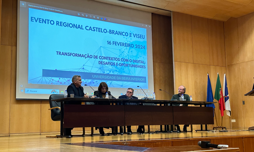 Na passada sexta-feira, dia 16/02/2024, a Escola Secundária Quinta das Palmeiras, através do seu Diretor, João Paulo Mineiro, participou no Evento Regional Castelo Branco – Viseu “Transformação de Contextos com o Digital: Desafios e Oportunidades”, na Universidade da Beira Interior. Este evento foi promovido pela DGE em estreita colaboração com os Centros de Competência TiC de Castelo Branco e Viseu e o CFAE da Beira Interior, e foi dirigido às Lideranças e às Equipas de Desenvolvimento Digital das Escolas. O tema apresentado foi por esta escola foi “O PADDE como elemento estrutural do Centro Pedagógico e Interpretativo”. Foi assim possível mostrar algumas das atividades pedagógica dinamizadas por esta estrutura, com a utilização direta do digital em exposições temáticas com os nossos professores e alunos.